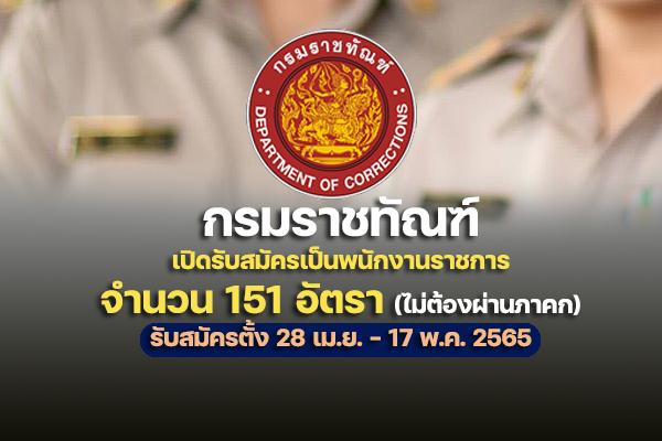 กรมราชทัณฑ์ เปิดรับสมัครสอบเป็นพนักงานราชการ 151 อัตรา รับสมัครทางอินเทอร์เน็ต ตั้งแต่วันที่ 26 เมษายน - 17 พฤษภาคม 2565