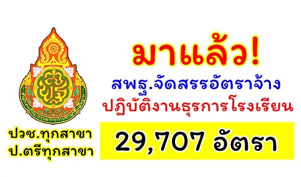 สำนักงานคณะกรรมการการศึกษาขั้นพื้นฐาน (สพฐ) จัดสรรอัตราจ้างปฏิบัติงานธุรการโรงเรียน จำนวน 29,707 อัตรา เปิดรับสมัครสอบเร็วๆนี้